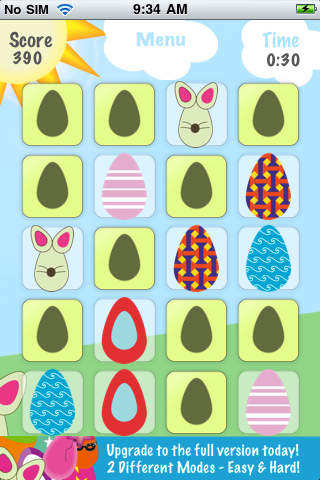There are 26 custom eggs, something for everyone. Choose between easy, medium, and hard difficulty levels. Play in Classic mode by matching all the eggs on screen or try out the All-New Timed mode where you try to beat the clock and match as many eggs as you can while getting bonus time for each succussful match. With a total of 26 eggs, 1 level, and 2 game modes, no two games are ever same. Match all the eggs and they will do a dance for you!