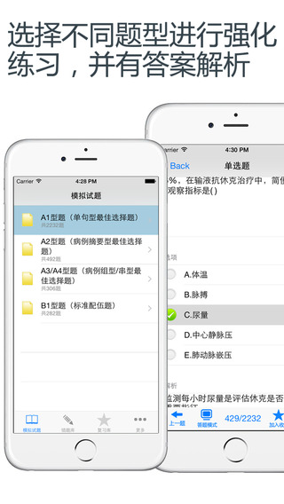 1、模拟试题:分不同A1、A2、B1、A3、A4型模拟考试试题,包含最新考题,并有答案解析。