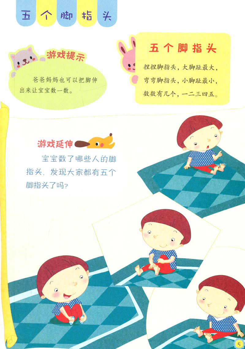 我们都希望孩子能拥有健康快乐的童年,也逐步意识到游戏对宝宝的价值,但是,“玩什么”似乎难住了家长。以脚、广为例,曹宇编著的《脚丫对对碰(宝宝的第一套身体探知书)》把适合这个年龄阶段动作能力、语言水平的有趣而经典的游戏都展现给了家长,比如“小脚变变变”和“跳舞毯”其实是民间游戏剪刀石头布、跳房子的化身。只要认真地阅读《脚丫对对碰(宝宝的第一套身体探知书)》,就会感到豁然开朗,像孩子一样看到脚丫想调皮地挠一挠、一刻不停地活动脚趾、不喜欢把奇妙的指甲剪掉,甚至踮起脚尖摇摇晃晃都是件好笑的事情,这本书能够帮助您从成人宏观、抽象的思维中解放出来,重新打开童年的记忆之门。