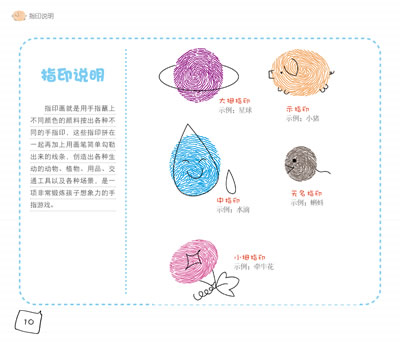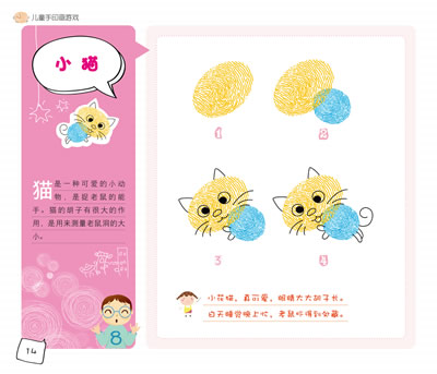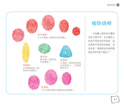 这本幼儿指印画游戏,适合幼儿园各个年龄段幼儿,它取材来源于幼儿生活,内容浅显易懂,语言流畅,生活有趣,情节稚气活泼,使幼儿的小手更加灵活,触觉更加敏感,头脑更加聪明、更加富有创造性,思维更加开阔。同时,这套幼儿园特色手指游戏也适宜幼儿在家中与父母一起活动和游戏。这本书来源与幼儿生活,内容浅显易懂,语言流畅,情节稚气活泼,使幼儿的小手更加灵活,触觉更加敏感,头脑更加聪明,思维更加开阔