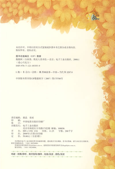 本书是一套供3-6岁幼儿阅读和欣赏的原创童话故事绘本,分为爱心巧克力和梦幻泡泡糖两个系列。一共有10篇童话故事。每个故事的语言简单生动、图画精致优美且富有童趣。这套书向开始学习阅读的孩子展现了最优美的文字和图画,书后还有专家所写的故事导读,父母在对孩子进行早期阅读的同时,进行着审美教育、爱的教育以及自信心、创造性、行为习惯和意志品格培养。孩子在早期阅读中积累起与父母共同学习的愉悦的情感体验,将成长为积极的终身学习者。本套书由著名童话作家、资深幼教专家、中央电台睡前故?栏目共同推出。