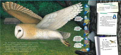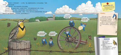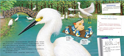 栩栩如生的插画将鸟类的形状、羽毛和神态展现得淋漓尽致。大开本设计,把鸟类的栖息地做了全景式的展现,让孩子仿佛置身生机盎然的大自然。