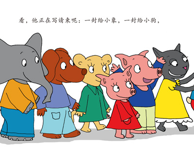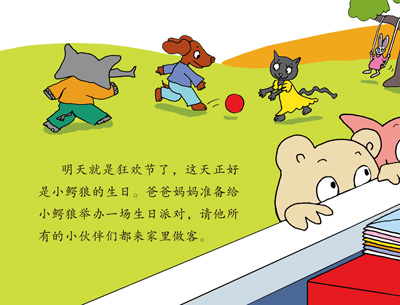 “明天就是狂欢节了,这一天正好是小鳄狼的生日。爸爸妈妈准备为小鳄狼举办一个生日派对,邀请他所有的小伙伴们都来参加。鳄鱼妈妈请他们吃糖果,狼爸爸给他们发尖尖的帽子和五颜六色的纸屑。忽然,灯光全灭了——‘祝你生子快乐!’小伙伴们齐声唱起歌来。吃完蛋糕,他们一起来到草地上,看狼爸爸燃放的烟花,多美妙的生日宴会呀!”
