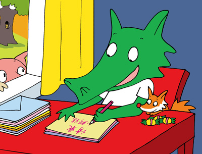 小鳄狼,遗传了鳄鱼妈妈的绿皮肤、宽嘴巴和锯齿尾巴;继承了狼爸爸的尖耳朵、小鼻子和健硕的腿脚——这种独特而经典的形相,使小读者过目不忘。