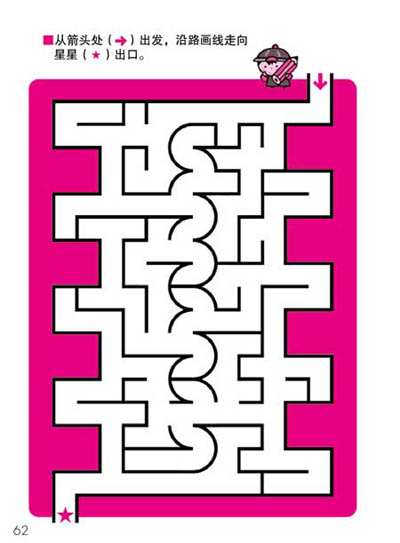 通过有趣的迷宫游戏,训练孩子用笔和思考的能力。