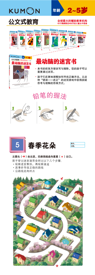 公文式教育,全球最大的辅助教育机构,45个国家超过400万的儿童从中受益,用铅笔画线穿过充满挑战的迷宫,为孩子学习写字打下坚实的基础。