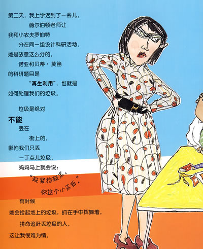 这本书讲的主要是我——小豆芽,还有拯救地球的故事。当时,我哥哥科尔特冲进家门,你一看就知道,有不好的事情发生了,因为他在跑(科尔特向来不跑的)。他说:“我们街上那棵树要被砍掉了。”(它可能快100岁了。)每个人都很郁闷。科尔特说他要制订一个行动计划,制止一切破坏活动。爸爸小声嘀咕着,真可惜他不对自己卧室里的一切破坏活动采取行动。妈妈说,科尔特要做与行动这个词有关的事情,这已经让我很高兴了。但是科尔特如何单枪匹马拯救这个星球呢?我很愿意帮忙,但是,我会在薇尔伯顿老师那里惹出很大的麻烦,虽然只是在很不重要的一天迟到一点点。