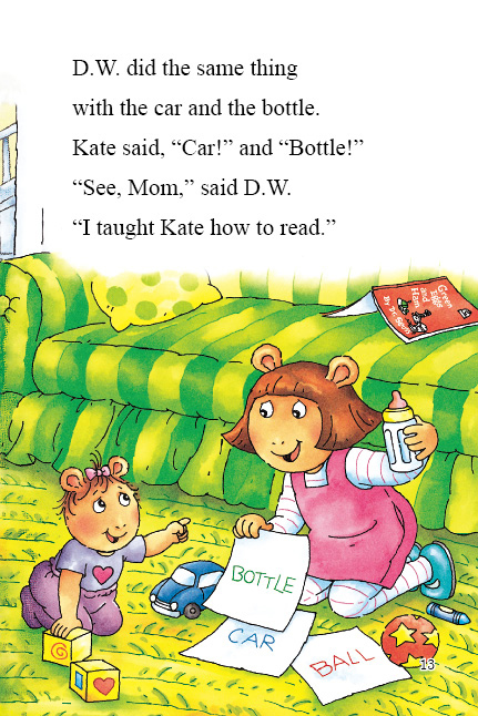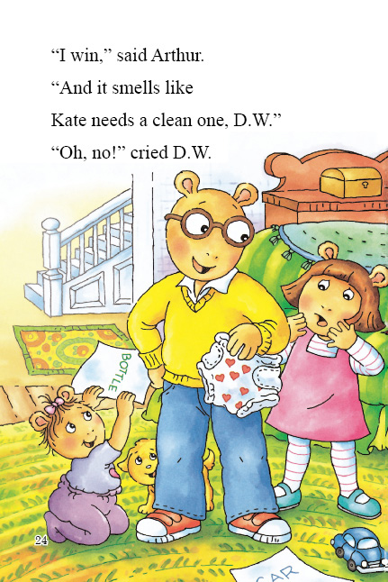 刚刚学会认字的朵拉和亚瑟打赌,说自己能教会小妹妹凯特宝宝认字,谁输谁就给凯特宝宝换臭尿布……结果,朵拉真的教会了凯特宝宝认字,还是使出了什么小把戏来蒙混过关?亚瑟又会想出什么好办法来揭穿朵拉的识字把戏呢?一起来瞧瞧吧!