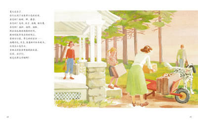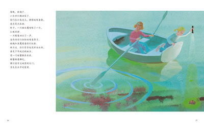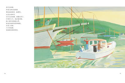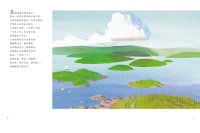 在佩诺海湾的水面上,露出一些岸边布满礁石的小岛。从岛上向远处望去,你可以看见,时间在一点点地走过去。一分钟一分钟,一小时一小时,一天又一天,冬去春又来。你能看见一片云,从海湾对面五十公里的格姆敦山上,露出脸来。云渐渐地变大,越来越近。云影把小山遮得黑乎乎的。然后,一个接一个,把埃尔岛、西岛、池塘岛、猪公岛、斯贝克岛、灌木岛……全都遮在了影子中……到了盛夏,海湾里布满了船。赛艇、航海用的大帆船、忙忙碌碌的渔船,还有“嘟嘟”叫的摩托艇。下午,你们迎着微风,驾驶小船,穿行在小岛之间。经过斯汶湾的礁石,看见海狮妈妈在逗小海狮玩耍。太阳落山时,你们掉转船头,朝自家的小岛驶来。海豚围着小船,喷水、跳跃……这是在岛上的美好时光。