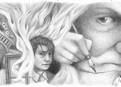 这本书呈现方式的奇特更让人过目难忘。它结合了绘本和小说的双重特性,将近三百页的连续插图,运用电影镜头般的推进营造戏剧的张力效果,用书特有的翻页重现电影的剪接,让读者随其特有的图文拼接将自己置身于叙事之中,让整本书看起来像是部小型的动画电影。作者利用文与图分离的叙述手法,让两者竞相争艳而又彼此呼应,巧妙的设计让默片的电影印象游移其中,图象在翻页中如电影播放般有了故事的鲜活和紧凑。作者采用底片般的黑色外框,框住文字页和图画页,一如默片的字幕卡。跨页的黑白图是一幅幅铅笔素描,温暖的炭笔素描层次丰富,恰当地制造着光影效果,勾勒出人物的细腻动态和微妙的内心变化。文字和图画合在一起后,彷若默片时代的电影.故事一开始,作者就刻意把读者带进电影院,读者看到银幕上的影像由远至近、由小变大,然后聚焦在主角雨果身上。这种模拟电影的做法与小说的内容相互辉映。