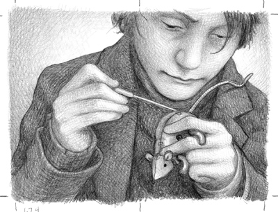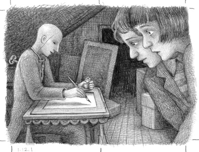 布莱恩·塞兹尼克(Brian Selznick),著名画家,塞兹尼克曾以《霍金斯的恐龙》荣获2002年美国凯迪克银牌奖,并以《造梦的雨果》摘取2008年凯迪克金奖和有出版奥斯卡美誉的2007年美国鹅毛笔奖。谈及本书的创作灵感来源时,塞兹尼克说:“数年前,我读了盖比·