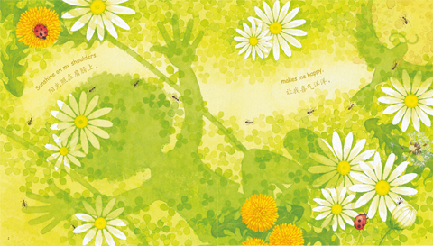 一个有着蓬蓬的褐色头发的小女孩在一大片金黄的底色上嬉戏,丹佛的词句跃然纸上。卡尼恩的图画仿佛散发着太阳的温暖。
