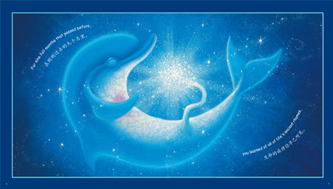 本书用一种罕见的、温和的方式,与孩子分享了一个新生命诞生的过程。约翰?丹佛那令人难以忘怀的美妙歌曲《远古的旋律》的主题是一只海豚宝宝的诞生,克里斯托弗?卡尼恩用那明朗的图画传达着一种神秘感、敬畏之心,以及对未来的期盼。有一副画描绘了一只小海豚弯着身体、身上还连着脐带,旁边有一只正在出生的海豚宝宝。小海豚很快就呼吸到了空气的味道,并且学会了海豚的生存方式,这跟人类宝宝其实是差不多一样的。冥冥中似乎有种难以名状的魔力——就像这首永恒的充满柔情的摇篮曲。