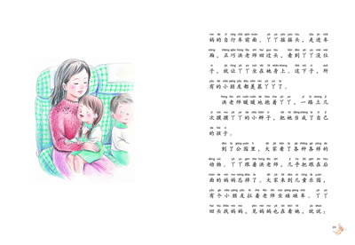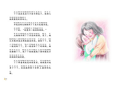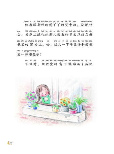扎着两根小辫子的女生丫丫, 是刚走进学校的一年级新生。 那座校园中, 有爸爸小时候种的石榴树, 有像妈妈一样和蔼、爱穿红裙子的老师, 有住在一座公寓楼内的力力和沙达, 所以,丫丫并不觉得陌生。