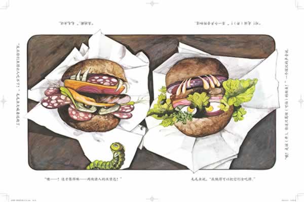 小毛毛虫讨厌老是吃叶子,它决定去找点新鲜玩意儿吃。一路上它遇到了各种各样第一眼看上去美味可口的食物,可是,当它被提醒再看一眼的时候,才发现那些“好吃的东西”其实完全不是那么回事儿!