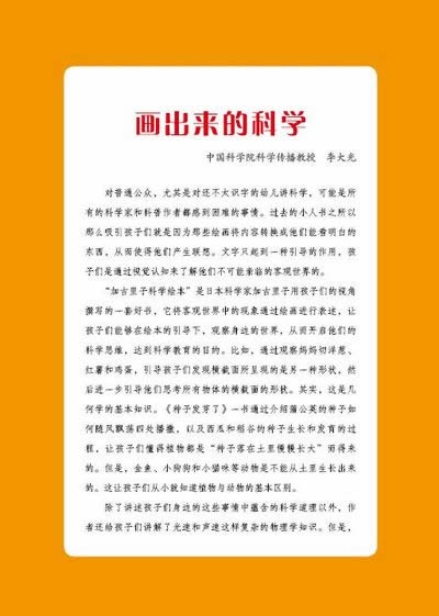 “加古里子科学绘本”是一套系统地体现加古里子的科学观的优秀绘本,非常适合做孩子们的科学启蒙书。作者从孩子们身边的各种现象和事物出发讲解最基础的科学知识,和他们一起通过讨论得出结论,在轻松愉快的气氛中为他们开启科学之门,吸引他们踏入科学殿堂,帮助他们形成科学思维能力。