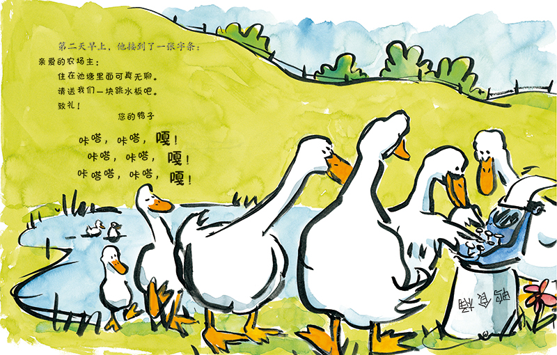 农场主不乐翁火冒三丈,决定派出鸭子,带着最后通牒去见奶牛。