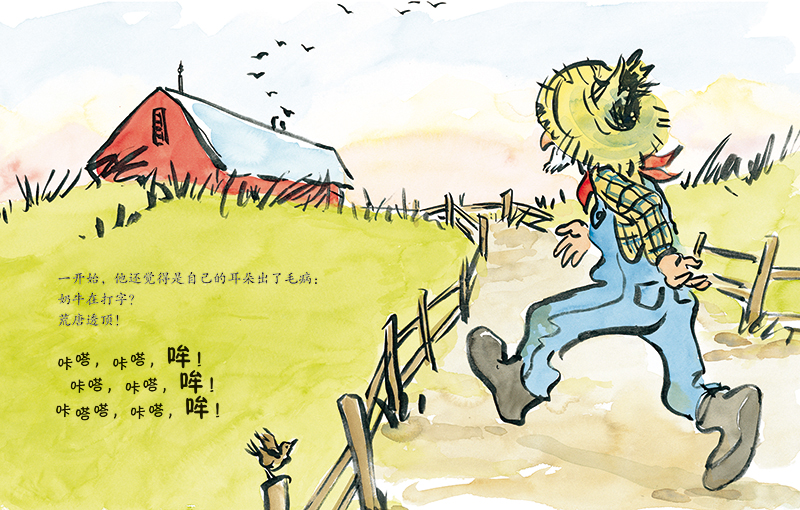 《咔嗒,咔嗒,哞》不仅能带给孩子快乐,还可以给所有人带来快乐。它的幽默风趣不仅来自于那些动物的异想天开和颠覆常理的语言行动,还来自于情节的出人意料和图画的滑稽夸张。我们不仅仅是阅读,我们还会在工作和生活中开始“咔嗒,咔嗒,哞!咔嗒,咔嗒,嘎!咔嗒嗒,咔嗒,哈哈哈”,然后会心地一笑,或者狡黠地偷笑。于是,那些很重的工作,很累的功课和很刻板的教育,就变得轻松和愉快了。因为幽默是一种消解的力量,它消解人生中的荒谬和沉重,但又绝不直白浅薄,幽默是一种生活的智慧,让人活得更乐观豁达。