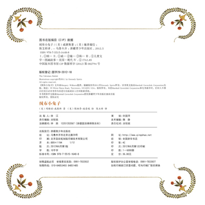 玛格丽·威廉斯,美国著名儿童文学作家,长期居住于宾夕法尼亚州。1922年,作家41岁时出版了《绒布小兔子》一书,迅速蜚声世界,《绒布小兔子》一书也随即成为家喻户晓的世界童书经典。此后,玛格丽?威廉斯又陆续撰写了多部儿童图书,其中的Winterbound一书曾荣获“1937年纽伯瑞儿童文学奖银奖”。作家于1944年逝世,享年63岁。