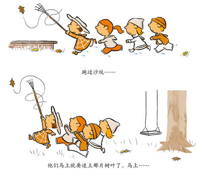 ●画风简洁明艳,多用赭石色、明黄色、橙色和橄榄绿,画面背景则是与之形成强烈对比的大色块,极大程度突出强调书中人物。2-6岁儿童可以轻易抓住人物情节,并以启蒙孩子美学欣赏。