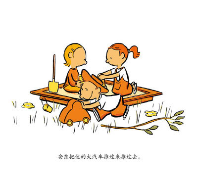 安东把他的大汽车推过来推过去。