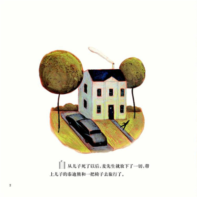 麦先生在失去儿子后,决定带着儿子的泰迪熊和一把椅子去旅行,途中他遇见了一个同样失去家人的小男陔,两人相互诉说着彼此的经历,伤痛的心灵于是得到慰藉。《麦先生的旅行》融着淡淡忧伤却隐含希望的图画书,将父亲对儿子无比深沉的爱表现得淋漓尽致。