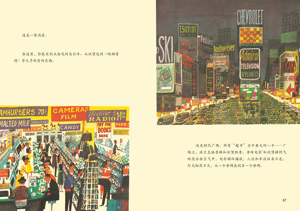 大胆时尚而富有创造性的多元表现手法,生动幽默的语言,惟妙惟肖的营造出精彩绝伦的视觉效果。直到今天,众多的电影大片仍以这套书里的插画背景和表现方式作为参考并采用,譬如大家所熟知的梦工厂出品的《马达加斯加系列》《精灵鼠小弟》和索尼动画的《食破天惊》等。
