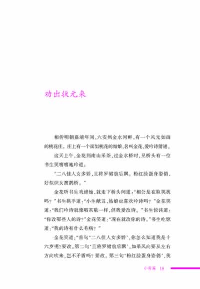本书所选的谜语故事,内容丰富多彩,有爱国故事、历史故事、民间爱情故事、侠女故事、幽默笑话故事等,在故事中融入谜语,并在故事结尾留有谜题,与读者形成良好互动,在教读者猜字谜、拆字谜的同时,提高读者我国汉字、历史等传统文化的认知,锻炼读者的想象力,同时丰富广大读者的业余生活,使读者增长知识,启迪人们进取向上,并使人读后开心一笑,留有余味。