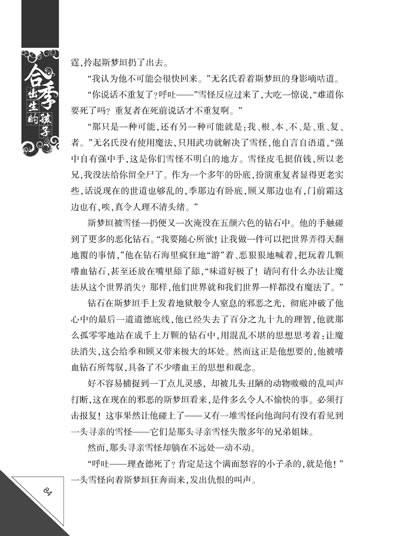 有一天,一位少年突然收到几封莫名其妙的信,尔后,他和姐姐又莫名其妙地掉入了另一个世界,在那里,他们遇到了寄信人,并卷入一场错综复杂、谜团重重的斗争中……合季指的是什么?合季出生的孩子是什么样的孩子?他们的命运又如何呢?本书将为你一个一个地揭开谜底……小说形式新颖,内容悬疑魔幻,情节扑朔迷离,越往后越精彩……