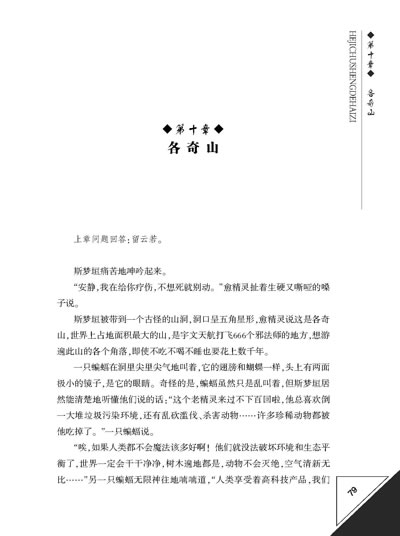 《合季出生的孩子》是一部孩子写的魔幻小说,但又不只是魔幻,还融入了悬疑、推理、武侠等元素,想象天马行空,情节曲折生动、扑朔迷离;小说人物阵容庞大,关系错综复杂,但每个人物都个性鲜明,能给读者留下较深的印象。在这部小说里,作者延用了自己的第一部小说中的两个人物——斯梦姐弟,这让看过星洛小说的读者会倍感亲切,然而这又是一个全新的故事,其内容与第一部小说无关。小说的形式很有特色,在每一章节的末尾,作者都会提出一个小问题,然后在下一章节的开头予以解答,为小说增添了悬念和趣味性,同时也能帮助读者更好地理解小说的内容。该小说想象大胆离奇,充满童趣,且并不显得幼稚;情节曲折生动,节奏感很强,但又并不显得凌乱;逻辑清晰,每一章的布局都很合理,首尾能够呼应,而这些都是出自一个13岁的孩子之手,实为难能可贵。在这部小说里,孩子才真正是一切的主角,一切都是以孩子的视角、孩子的情感、孩子的思想为主线,所以算得上是真正的“童话”。